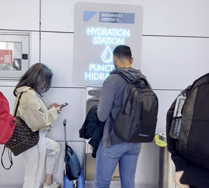 Astfel, pasagerii aeroportului au la dispoziţie atât apă potabilă gratuită, cât şi dispozitive de încărcare cu apă a sticlelor.