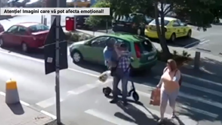 În imaginile surprinse de camerele de supraveghere se vede cum un barbat pe trotinetă vine cu viteză pe șosea și nu a oprit la trecerea de pietoni, unde se aflau două persoane care traversau, un bărbat și o femeie, transmite Digi24.ro