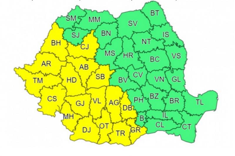 Cod galben de ploi, grindină și vijelii în jumătate de țară