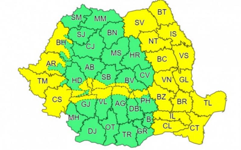 Administrația Naţională de Meteorologie a emis, marți, două avertizăti cod galben de vreme severă. Temperatura scade cu 10 grade de la o zi la alta și în București.