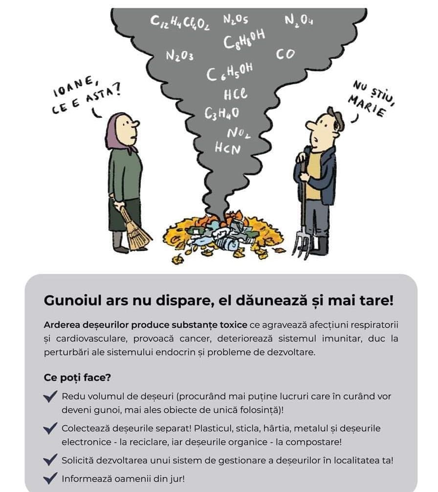 Garda de Mediu avertizează locuitorii că arderea frunzelor este interzisă. „Arderea frunzelor dăunează grav sănătăţii tale şi a celor din jur”, susţin reprezentanţii Gărzii de Mediu.