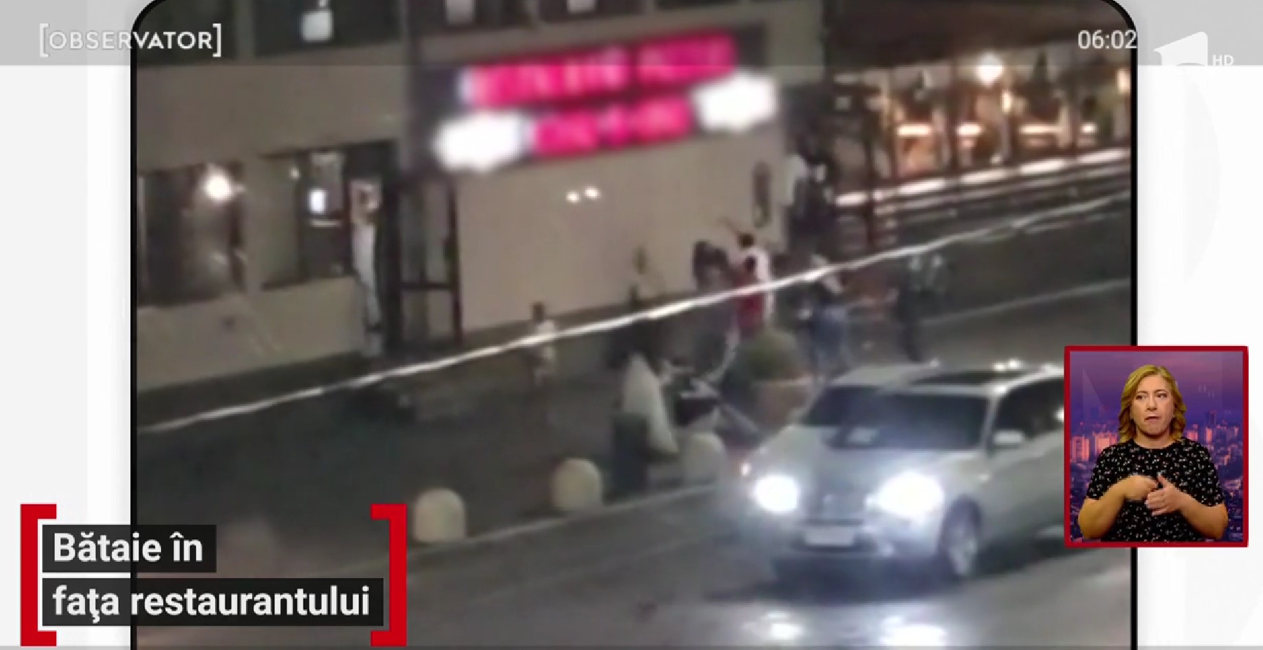 Bătaie cu pumni și picioare, filmată în fața unui restaurant din București – FOTO