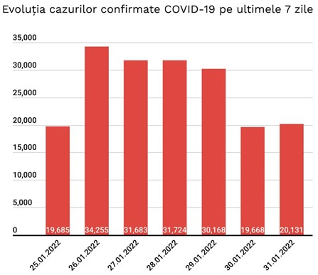 În ultimele 24 de ore au fost înregistrate 20.131 de cazuri noi de persoane infectate cu SARS – CoV – 2 (COVID – 19), cu 463 mai mult decât în ziua anterioară. 2.038 dintre cazurile noi din 24 de ore sunt ale unor pacienți reinfectați, testați pozitiv la o perioadă mai mare de 180 de zile după prima infectare.
