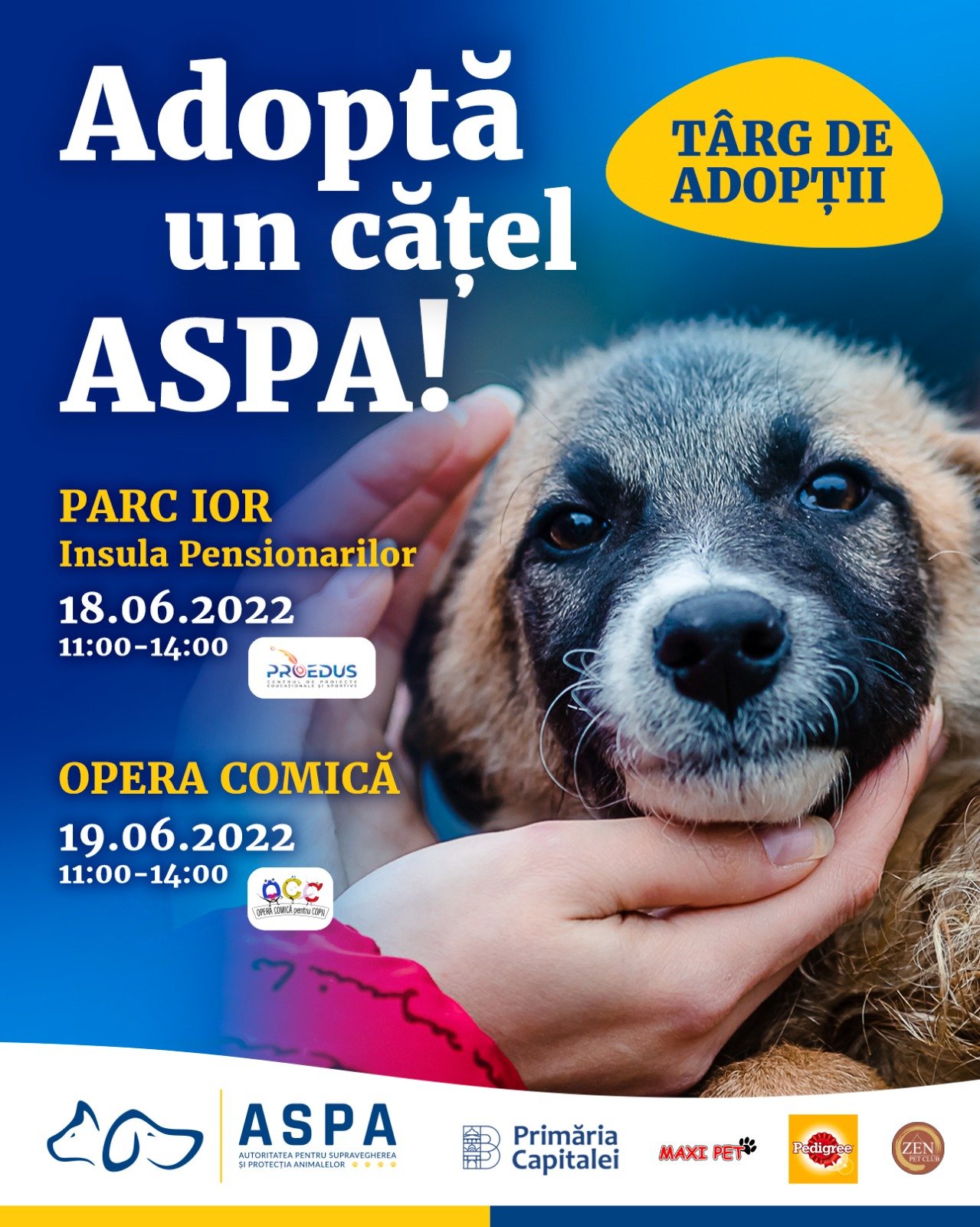 Astfel, sâmbătă 18 iunie, cățeii își așteaptă viitorii stăpâni în Parcul IOR, Insula Pensionarilor, în intervalul orar 11:00 – 14:00 iar duminică 19 iunie, Târgul de adopții se mută la Opera Comică pentru Copii, în același interval orar, respectiv 11:00 – 14:00.