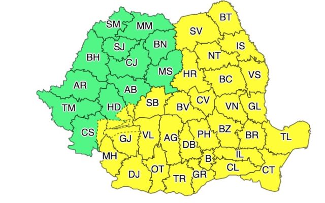 Codul galben anunţat de meteorologi este valabil de la ora 11 până la ora 21, fiind aşteptate intensificări ale vântului şi instabilitate atmosferică temporar accentuată.