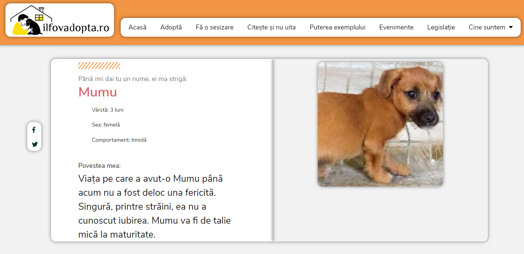 Pe platforma www.ilfovadopta.ro se regăsesc fotografii cu toţi câinii din adăposturile din Ilfov disponibili pentru adopţie. La secţiunea ADOPTĂ, sub fiecare fotografie, sunt prezentate câteva detalii esenţiale despre animale: sex, vârstă şi informaţii privind comportamentul. De asemenea, cu ajutorul hărţilor interactive, adresa adăposturilor poate fi identificată mult mai uşor, pentru ca oamenii să poată ajunge la câinele căruia vor putea să îi schimbe viaţa în bine.