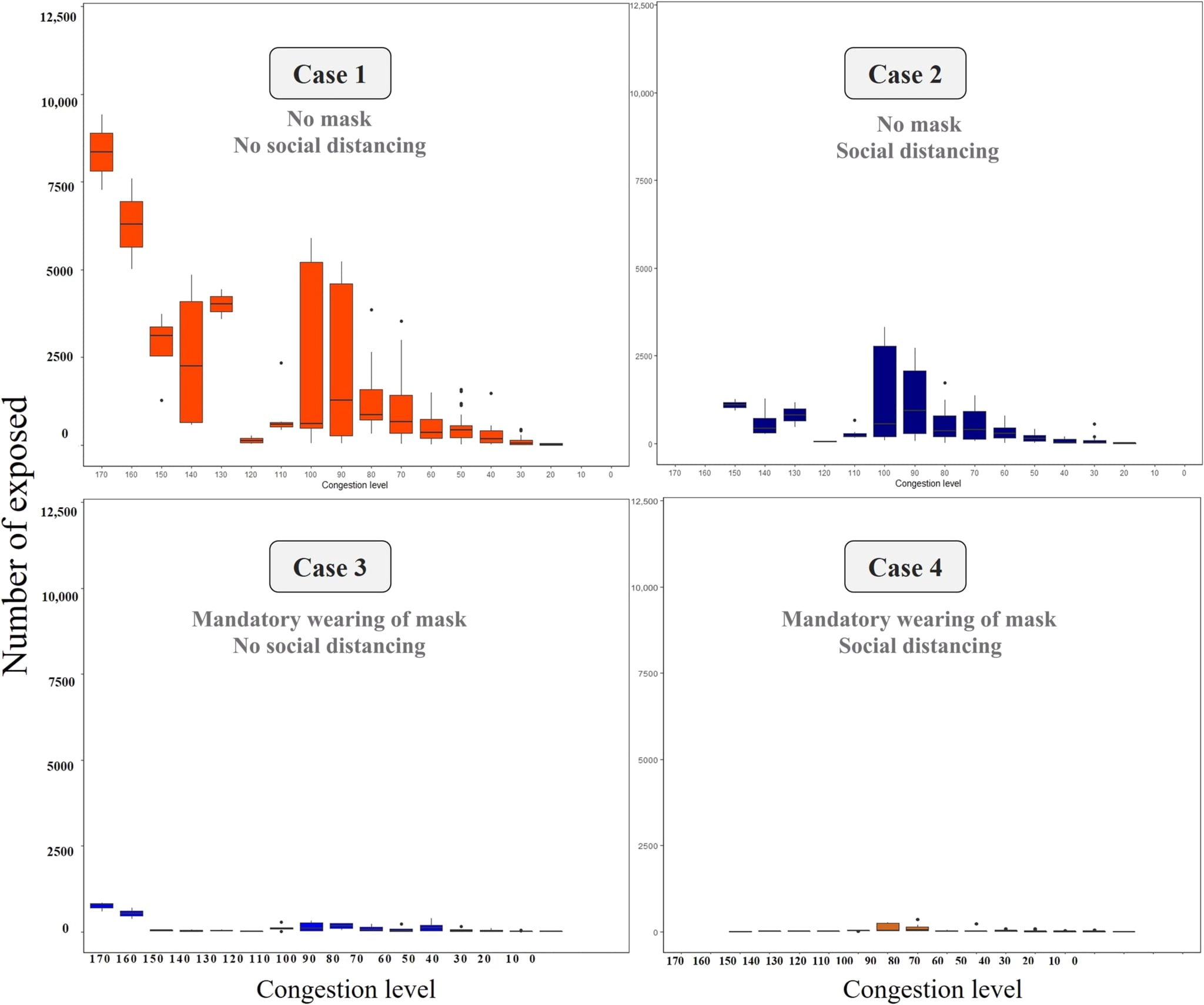 În Coreea de Sud, la orele de vârf, numărul persoanelor expuse la virus a scăzut cu 64,4%, când au fost implementate măsurile de distanţare socială, 93,5%, când purtarea măştii a fost obligatorie şi 98,1%, când au fost implementate în acelaşi timp ambele măsuri.