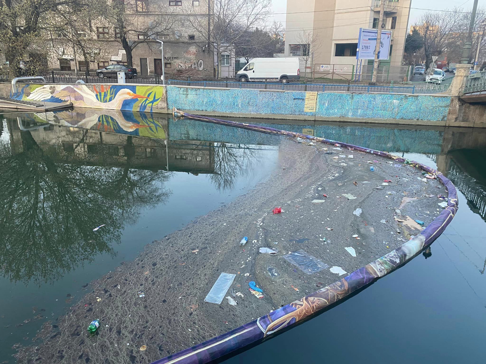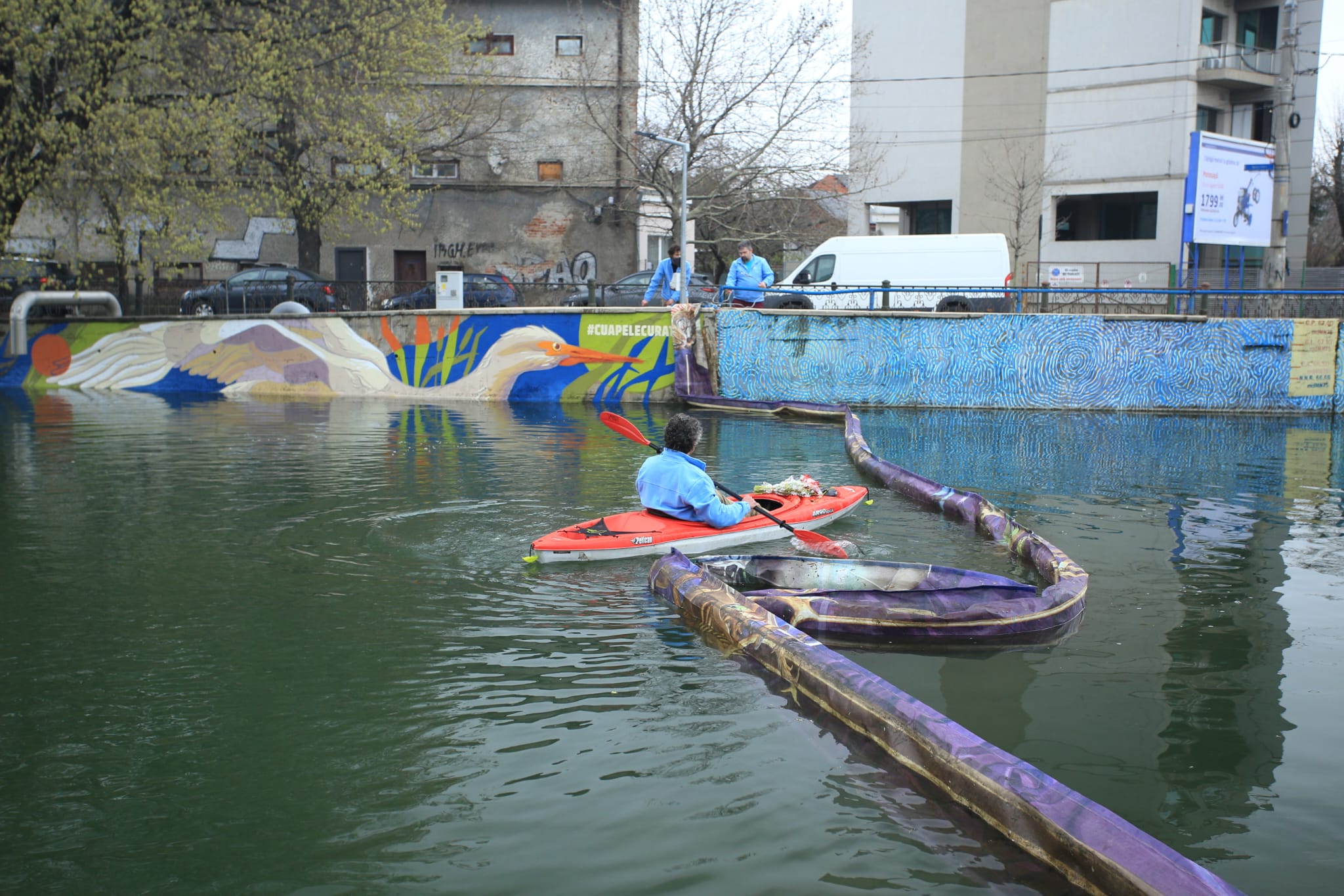 - Bariera plutitoare a fost creată în cadrul programului Cu Apelel Curate, în colaborare cu Nod Makerspace, din bannere publicitare recuperate și donate de Ateliere Fără Frontiere, iar flotoarele sunt construite din bidoane de plastic reutilizate