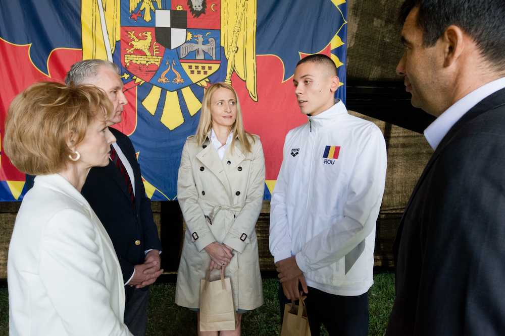 La evenimentul de la Palatul Elisabeta au participat antrenorii şi preparatorul fizic ai sportivilor campioni, precum şi reprezentanţii Federaţiei Române de Nataţie şi Pentatlon Modern, Camelia Potec, Matei Giurcăneanu, Andreea Frigioiu, Silviu Anastase, Ştefania Nicolae şi Daniel Remeş.
