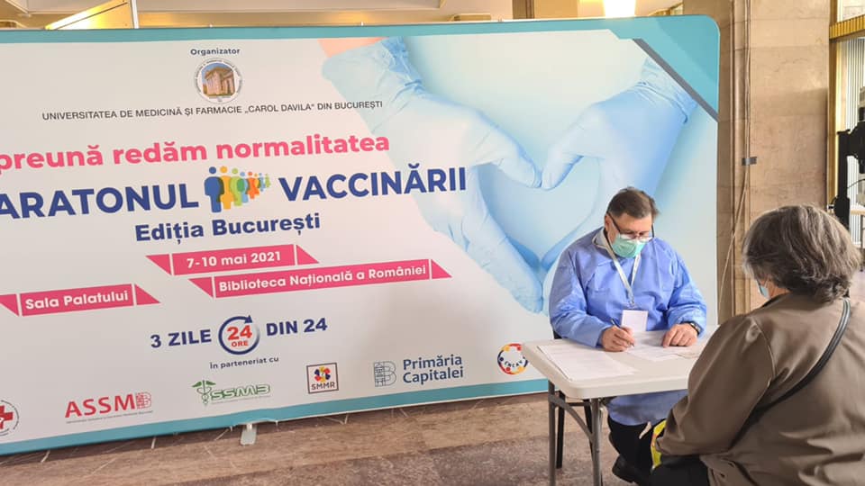 „Particip la maratonul de vaccinare organizat în București de UMF “Carol Davila” și dacă încă nu v-ați vaccinat, vă așteptăm azi la Sala Palatului sau la Biblioteca Naționala pentru prima doză de vaccin Pfizer împotriva Covid-19. Peste 16000 de persoane s-au vaccinat în ultimele 48 de ore la Maratonul Vaccinării din București!