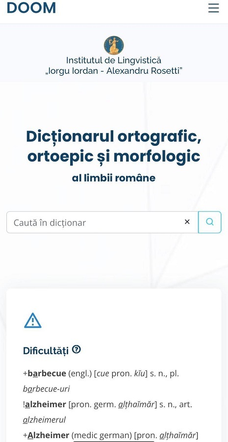 Cea mai recentă ediţie a „Dicţionarul ortografic, ortoepic şi morfologic al limbii române” – DOOM 3, tipărită în 2021, poate fi consultată online, în regim gratuit, accesând adresa https://doom.lingv.ro/.