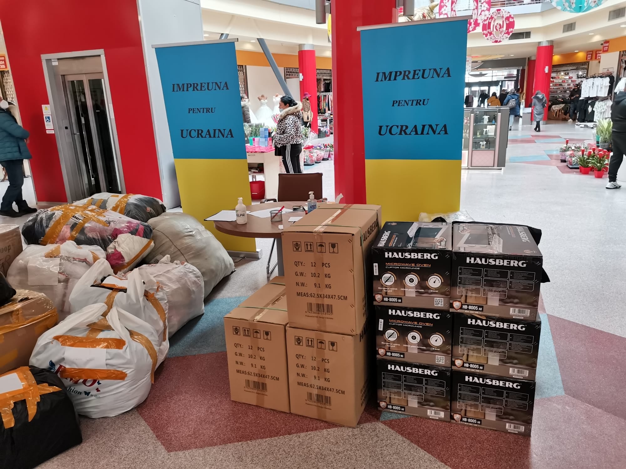 Astfel, la parterul clădirii Megashop din centrul comercial şi logistic Dragonul Roşu a fost deschis un punct de colectare donaţii pentru cetăţenii ucraineni care fug din calea războiului.