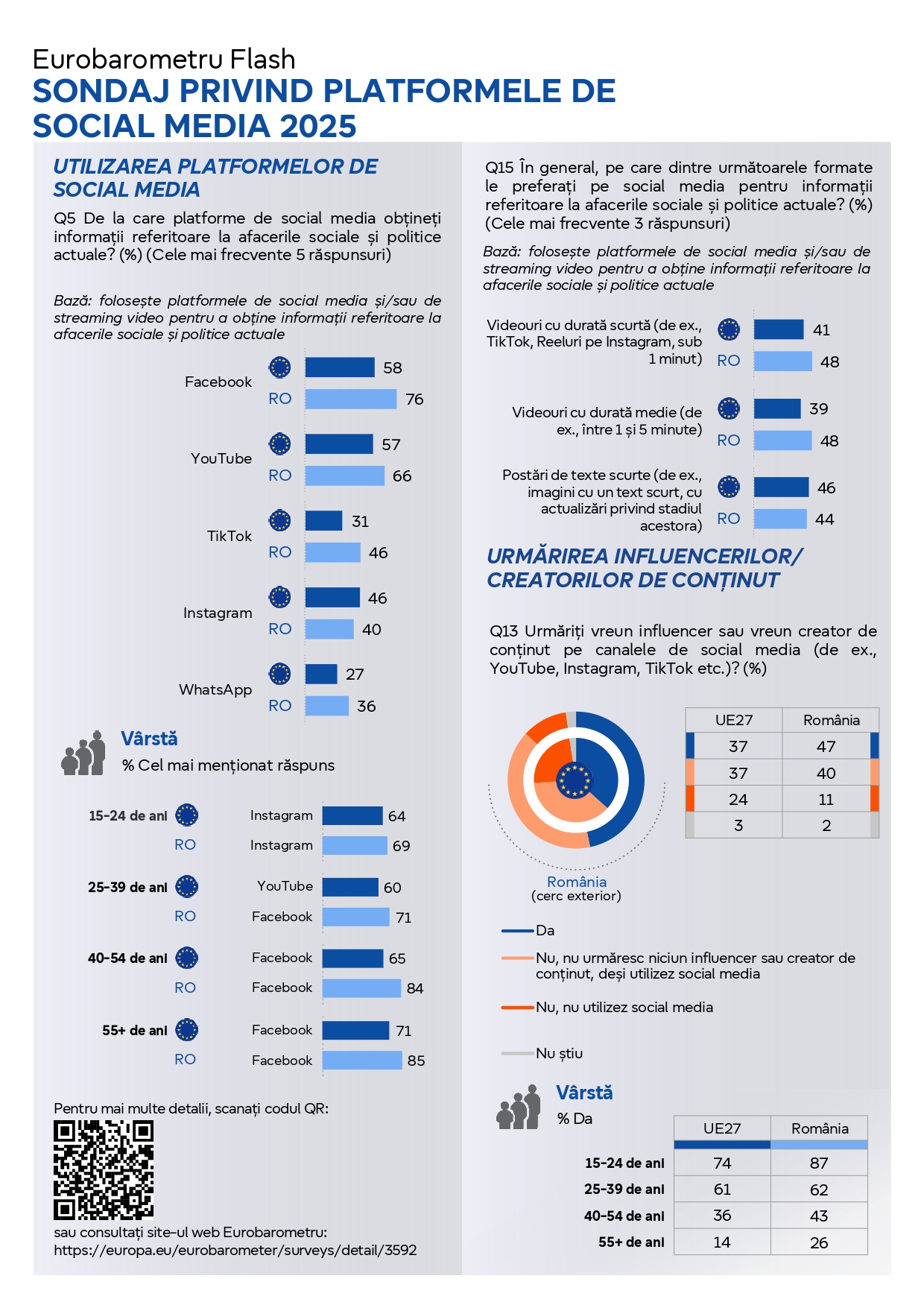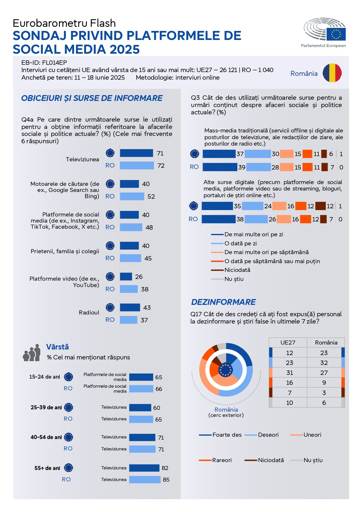 - Acesta analizează aspecte precum obiceiurile de informare, modelele de utilizare a rețelelor sociale, expunerea la dezinformare și implicarea în conținutul creat de influenceri.