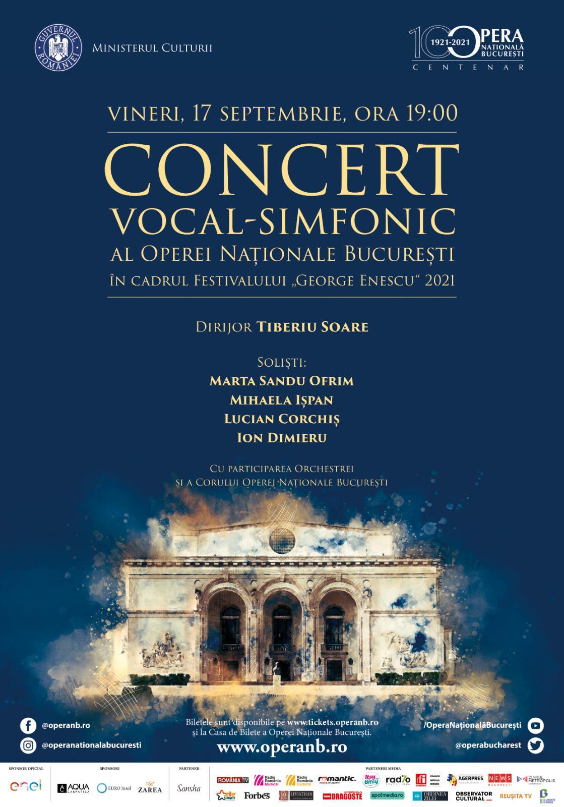Opera Națională București vă invită vineri, 17 septembrie, începând cu ora 19:00, la Concert vocal-simfonic prezentat în cadrul Festivalului „George Enescu” 2021.
