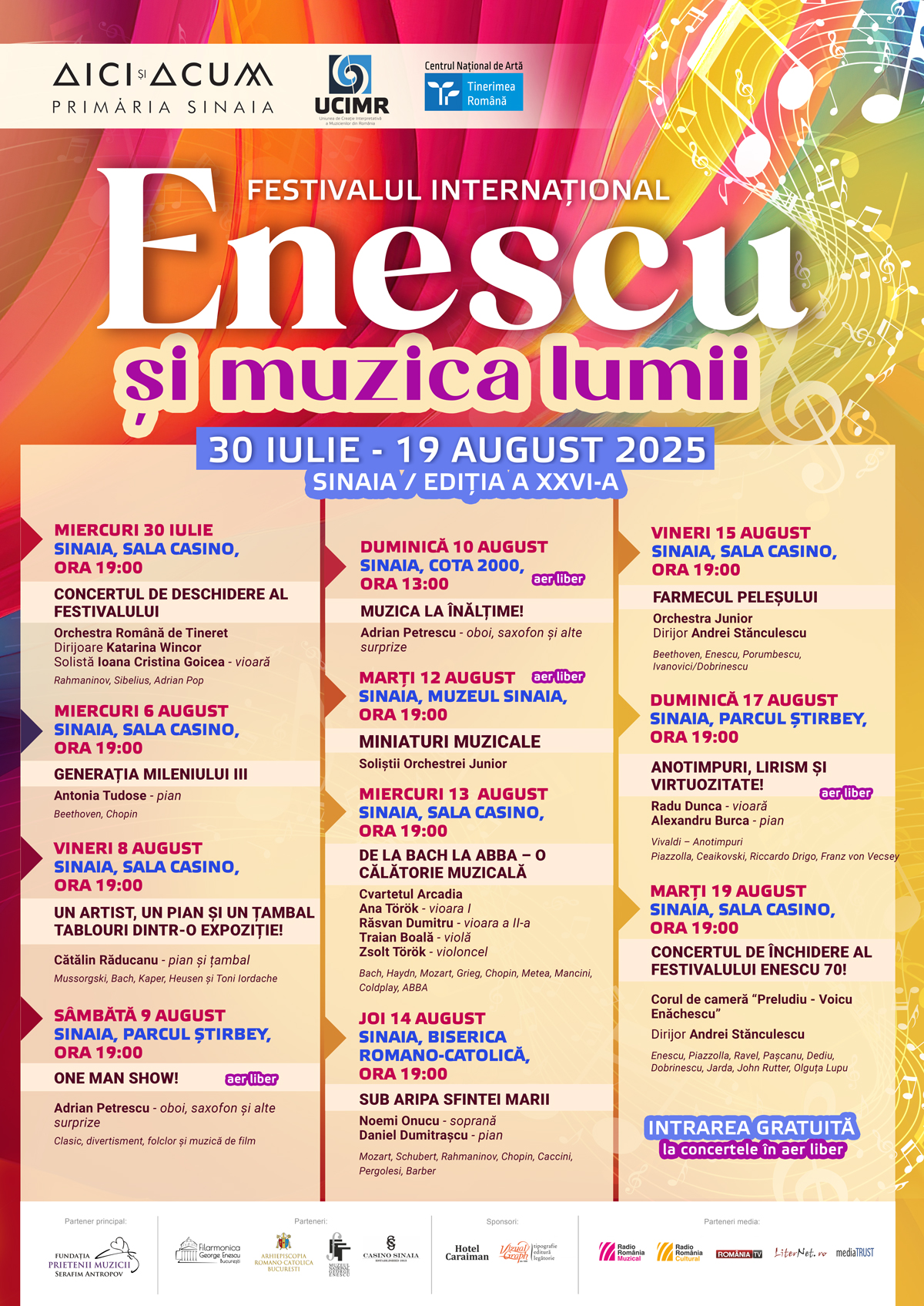 Sinaia devine din nou capitala muzicii clasice în această vară și va găzdui între 30 iulie și 19 august 2025 cea de-a 26-a ediție a Festivalului Internațional „Enescu și muzica lumii”, unul dintre cele mai longevive și îndrăgite evenimente culturale estivale din România.