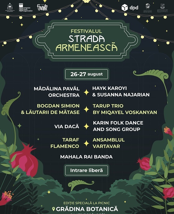 Cea de-a VII-a ediţie a Festivalului Strada Armenească, la picnic, aduce două zile încărcate de evenimente inedite, pentru publicul de toate vârstele.  Vreme de două zile, Grădina Botanică din Bucureşti va găzdui zece concerte de muzică live ale unor artişti din Armenia şi România, două DJ sets, târg meşteşugăresc, iar participanţii se vor bucura de asemenea de gastronomii internaţionale, cafea la nisip, expoziţii, o bibliotecă în natură, realizată de Editura Ararat şi ateliere de dansuri armeneşti, sculptură tradiţională în piatră (Khachkar).