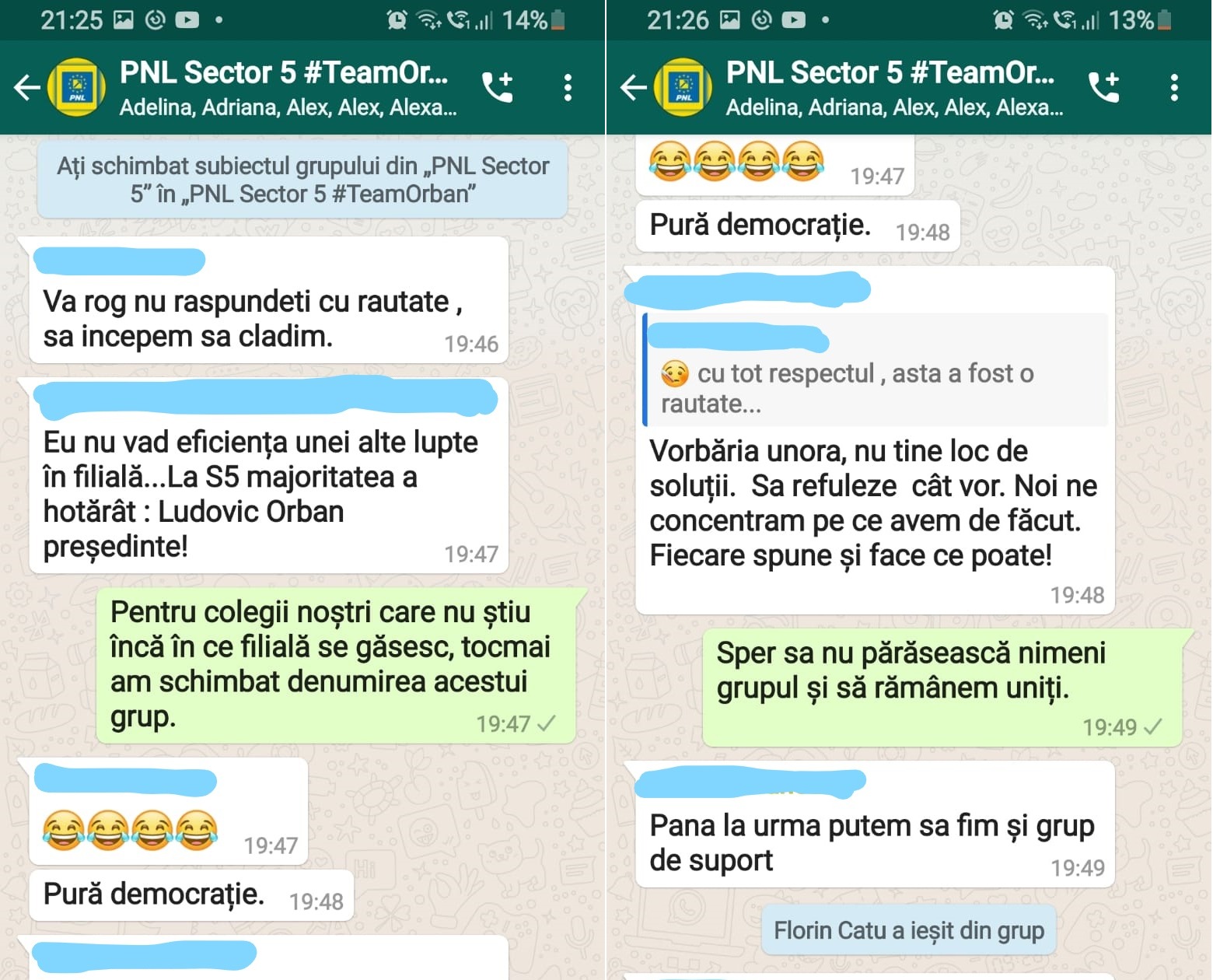 Conform unei capturi ce surprinde discuția purtată după anunțarea rezultatului votului, publicată de Hotnews.ro, a fost schimbat inclusiv numele grupului – din „PNL Sector 5” în „PNL Sector 5 #TeamOrban”.