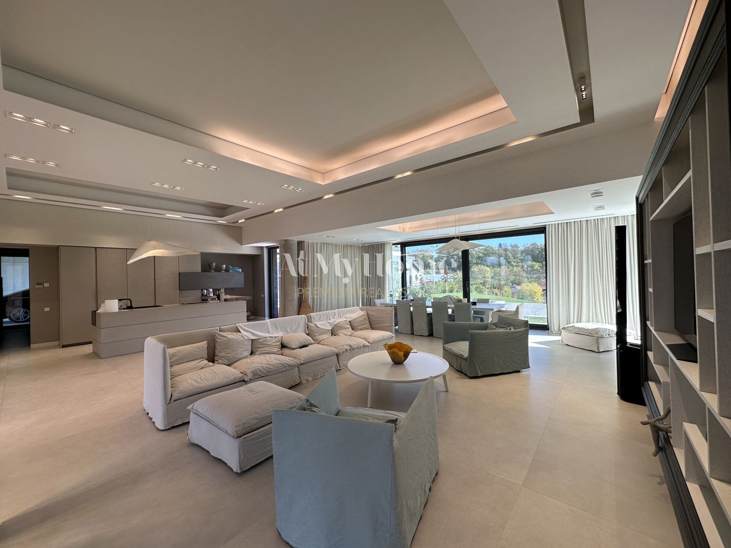 Vila se află pe malul lacului Snagov, are o suprafață 420 mp și este compusă din living cu deschidere către piscină, curte proprie, dormitor matrimonial cu dressing walk-in, office și sală de fitness, două dormitoare secundare cu băi proprii și o baie pentru oaspeți. Toate camerele au vedere spre lac.