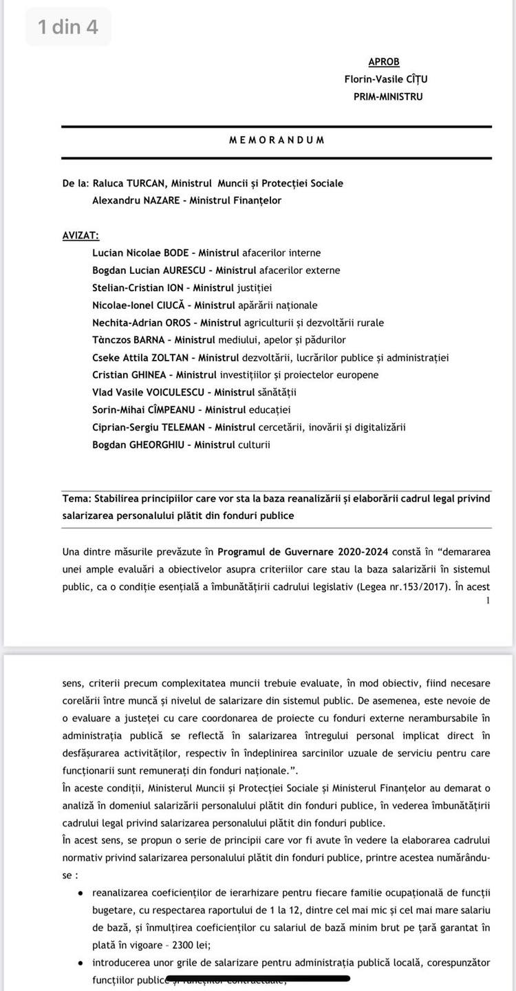 Prim-vicepreşedintele PSD, Gabriela Firea, a publicat, luni, un memorandum discutat în Guvern referitor la reducerea veniturilor medicilor şi asistentelor, despre care ministrul Sănătăţii Vlad Voiculescu a spus că este o minciună.