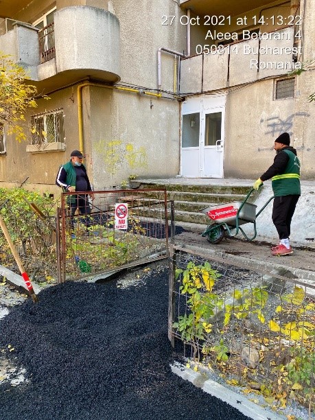 • Aleea Botorani nr. 6, bl. V 83, sc. 2(in fata blocului) – reparatii locale sistem rutier, trotuare si alee acces bloc(comanda nr. 106173;pct4)