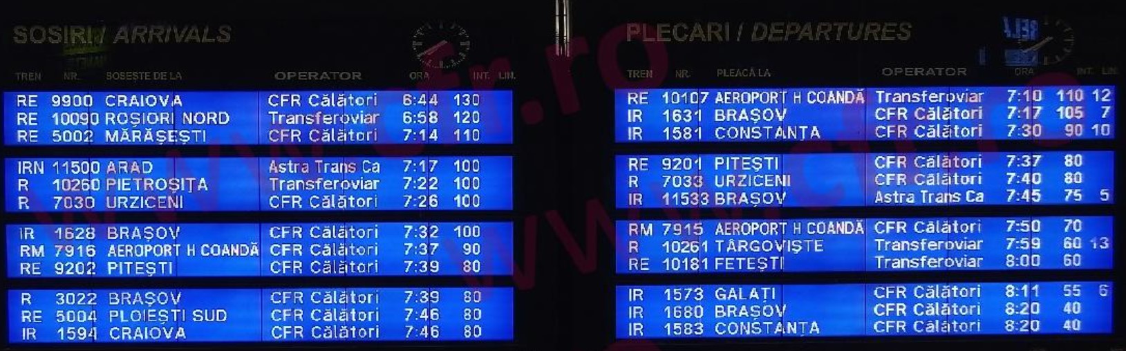 Astfel, trenurile nu vor circula vineri, între orele 07:00 și 09:00, iar călătorii sunt nevoiți să privească neputincioși panoul cu sosiri și plecări care nu corespunde cu planurile lor.