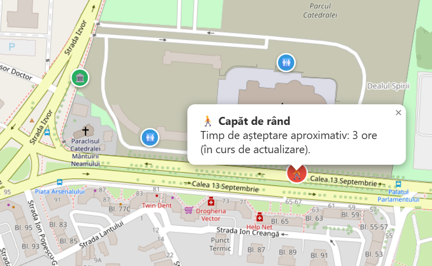 Hartă interactivă: Vezi în timp real unde se termină rândul pelerinilor veniți să treacă prin altarul Catedralei Naționale