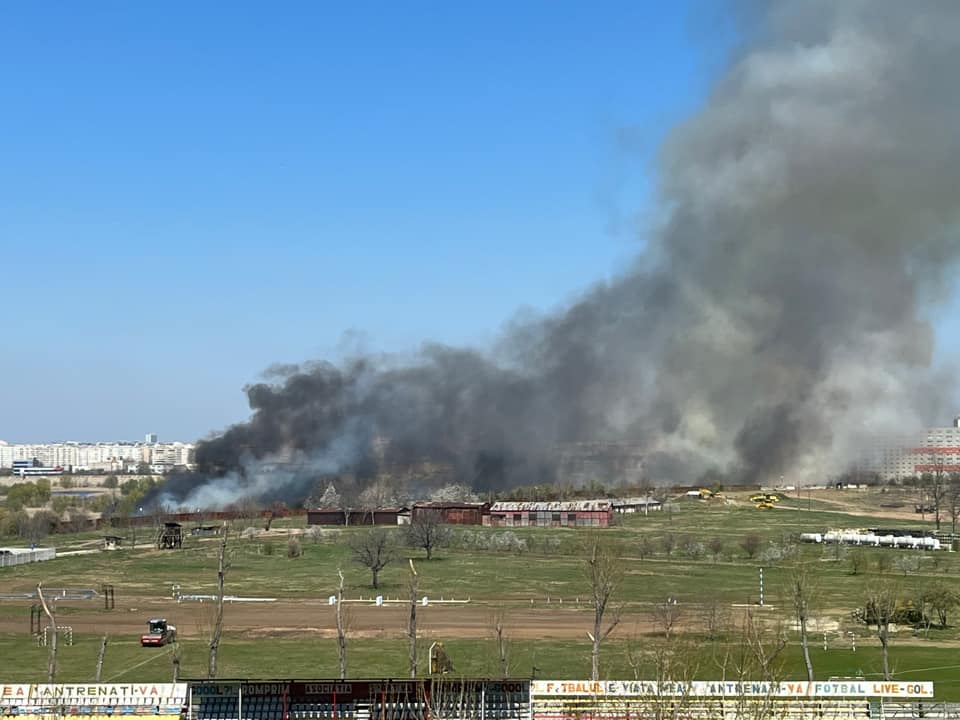 Pompierii susțin că sunt degajari mari de fum și că vântul influențează modul de manifestare a incendiului.
