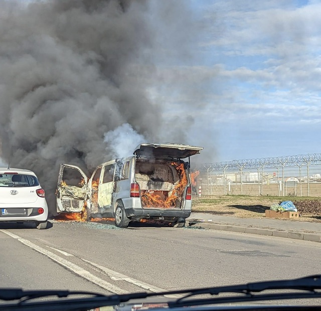 Incendiu pe DN 1, la ieșirea din București. O mașină a luat foc în apropierea aeroportului Băneasa.