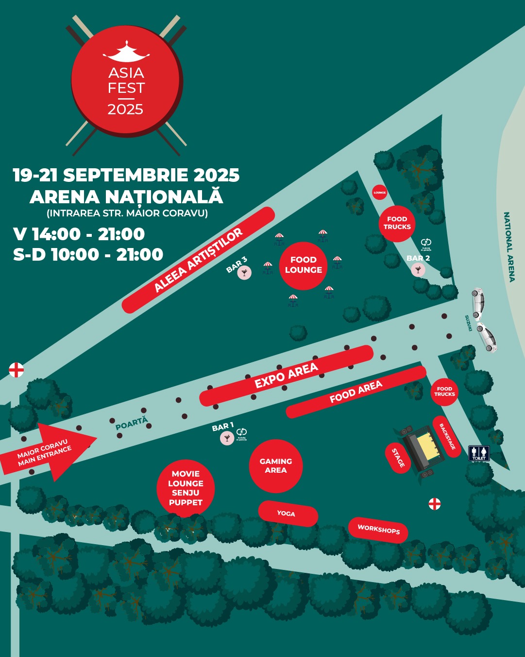 Cel mai mare festival dedicat culturii și gastronomiei asiatice din Europa de Sud-Est, ASIA FEST, are loc între 19 și 21 septembrie 2025, în curtea Arenei Naționale (intrarea dinspre Strada Maior Coravu).