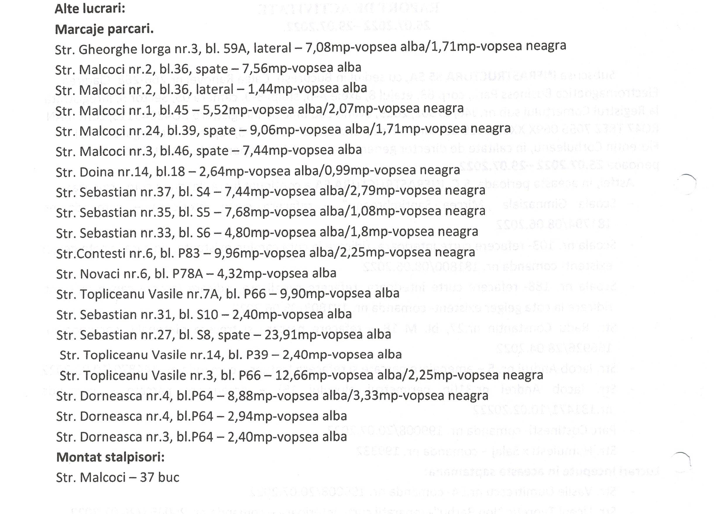 În această perioadă, Infrastructura S5 S.A. a încheiat mai multe lucrări de amenajare parcare, refacere trotuarm refacere curte interioara.