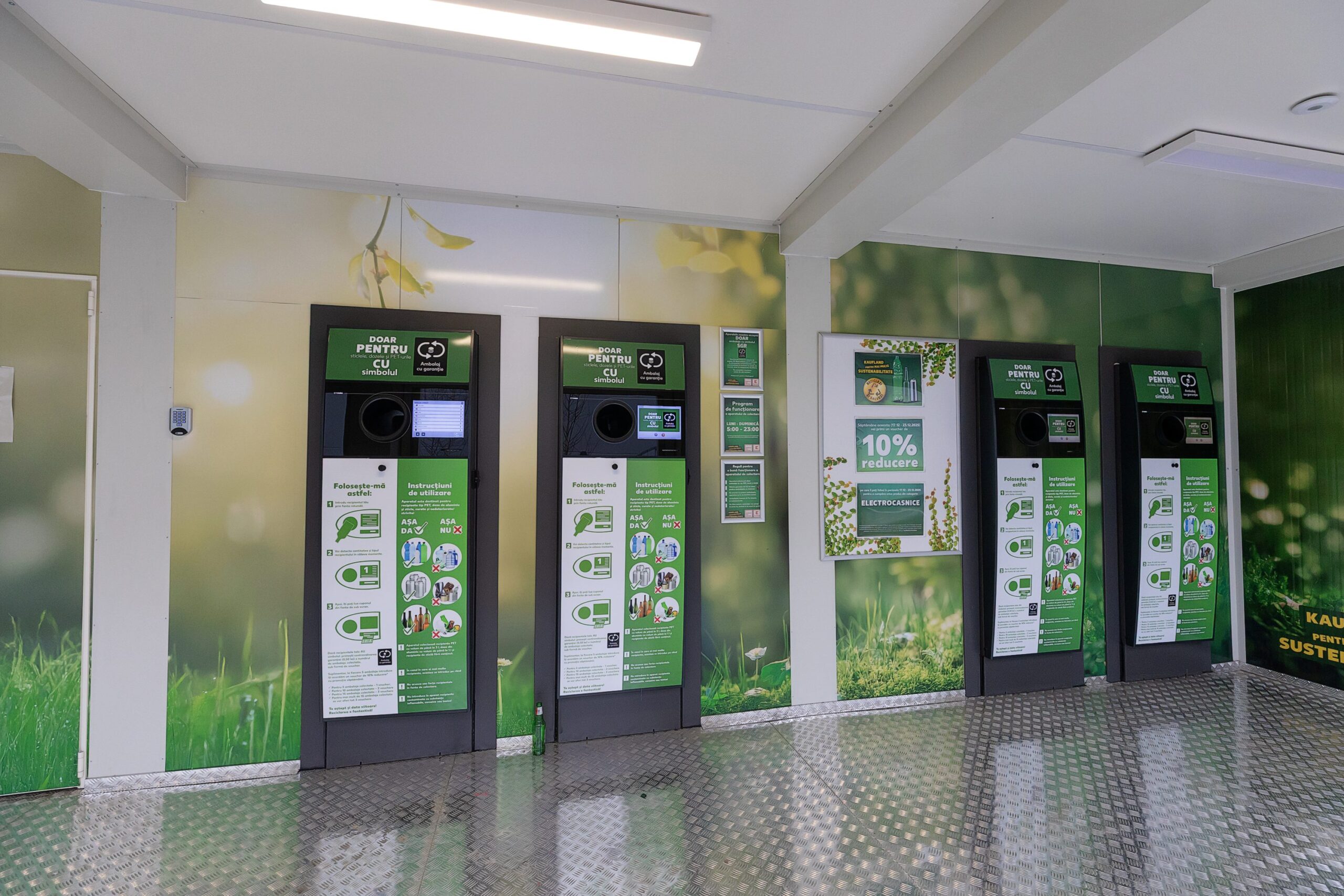 • În exteriorul magazinului, clienții vor găsi un automat de reciclare self-service, prevăzut cu patru guri de colectare, unde pot recicla ambalaje în schimbul voucherelor de extra-reducere. Pot aduce aici PET-uri, sticle și doze de metal (cu volum de până la 3 litri), garanția de 0,50 RON fiind restituită doar pentru ambalajele cu simbolul „Ambalaj cu garanție” tipărit pe etichetă.