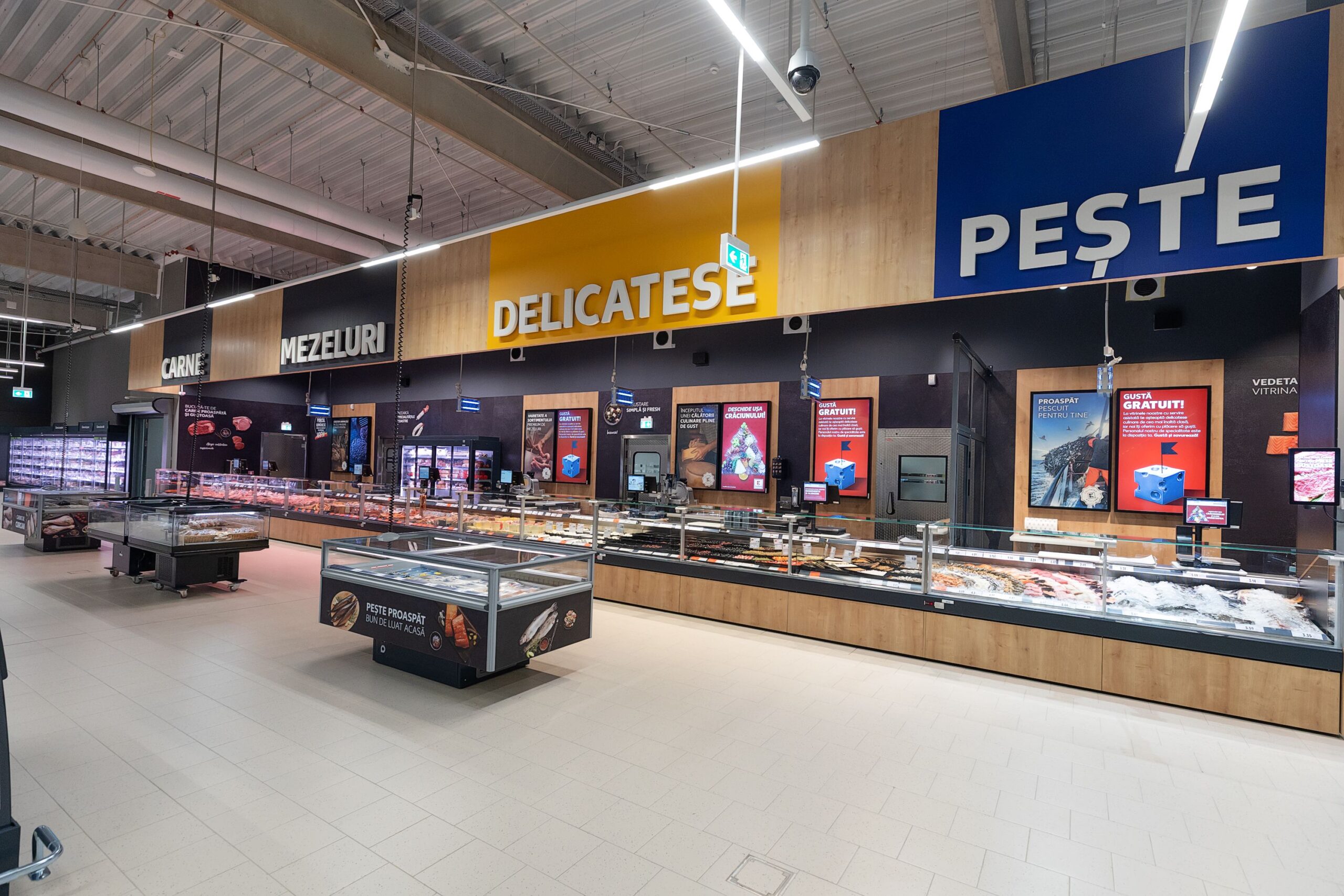 - Hypermarketul dispune de o vitrină asistată pentru produse proaspete, cu o lungime de 20 de metri, raion de pește proaspăt, raion extins de legume-fructe, brutărie, produse congelate, produse lactate, alimente de bază, dulciuri, drogherie, băuturi și produse nealimentare.