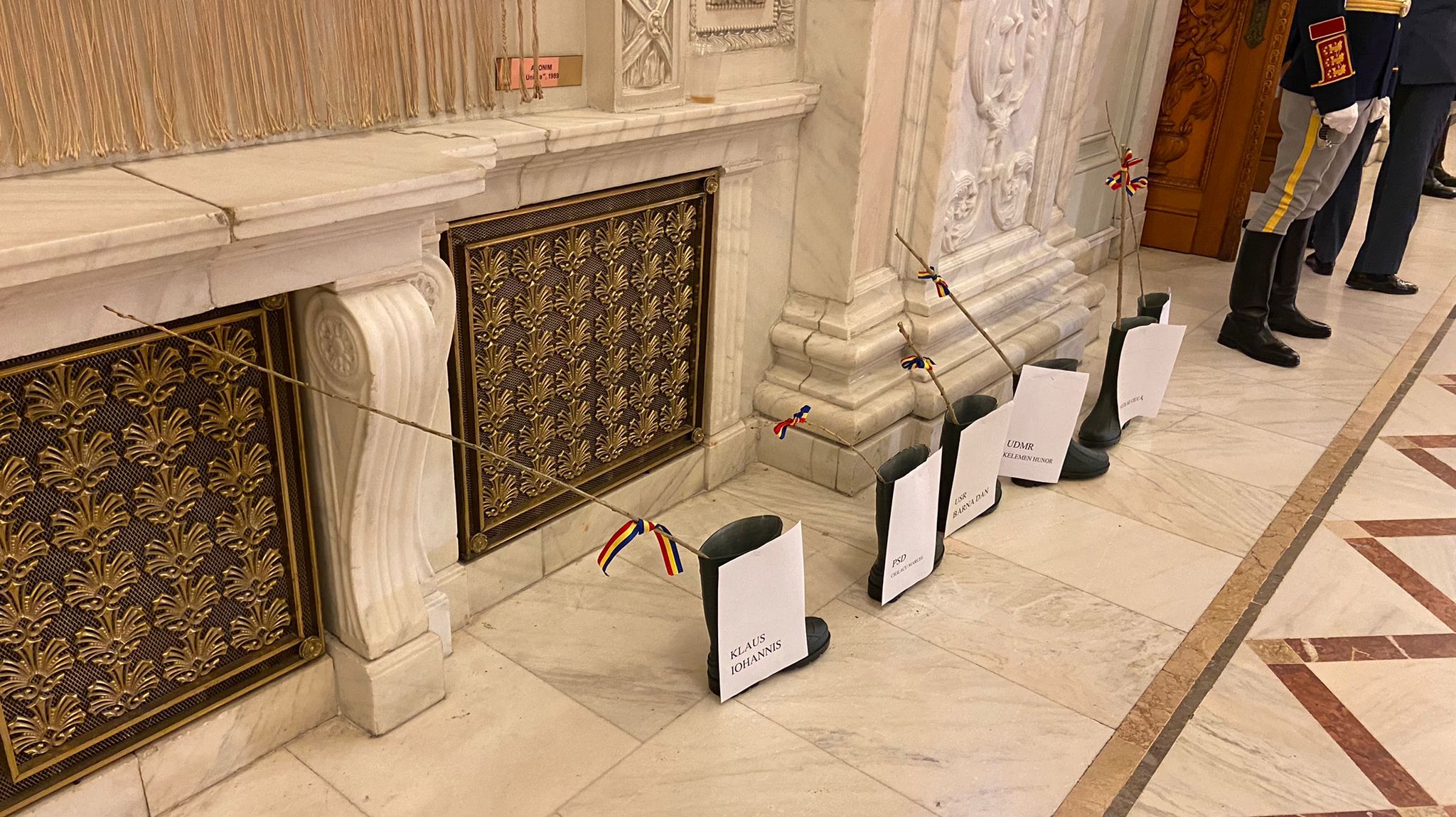 Nuielele au fost puse în cizme de cauciuc, ”repezentative pentru situația drumurilor din România”, la intrarea în Plenul Camerei, unde are loc o şedinţă solemnă dedicată aniversării a 30 de ani de la adoptarea Constituţiei în vigoare.
