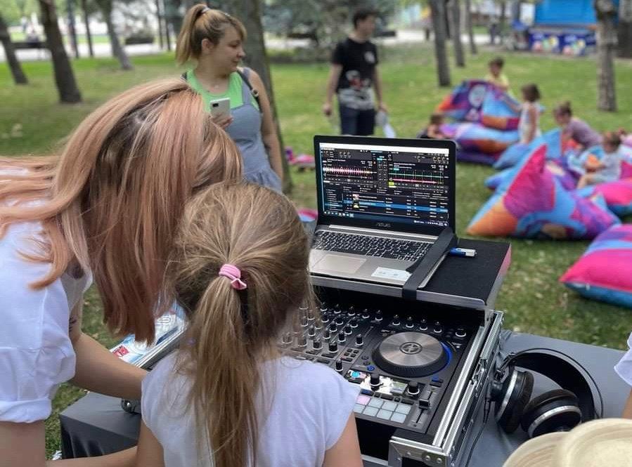- Atelierul de DJ muzical, unde copiii descoperă cum funcționează mixerul de radio, au ocazia “să facă butoane” și să mixeze piesele lor muzicale preferate.