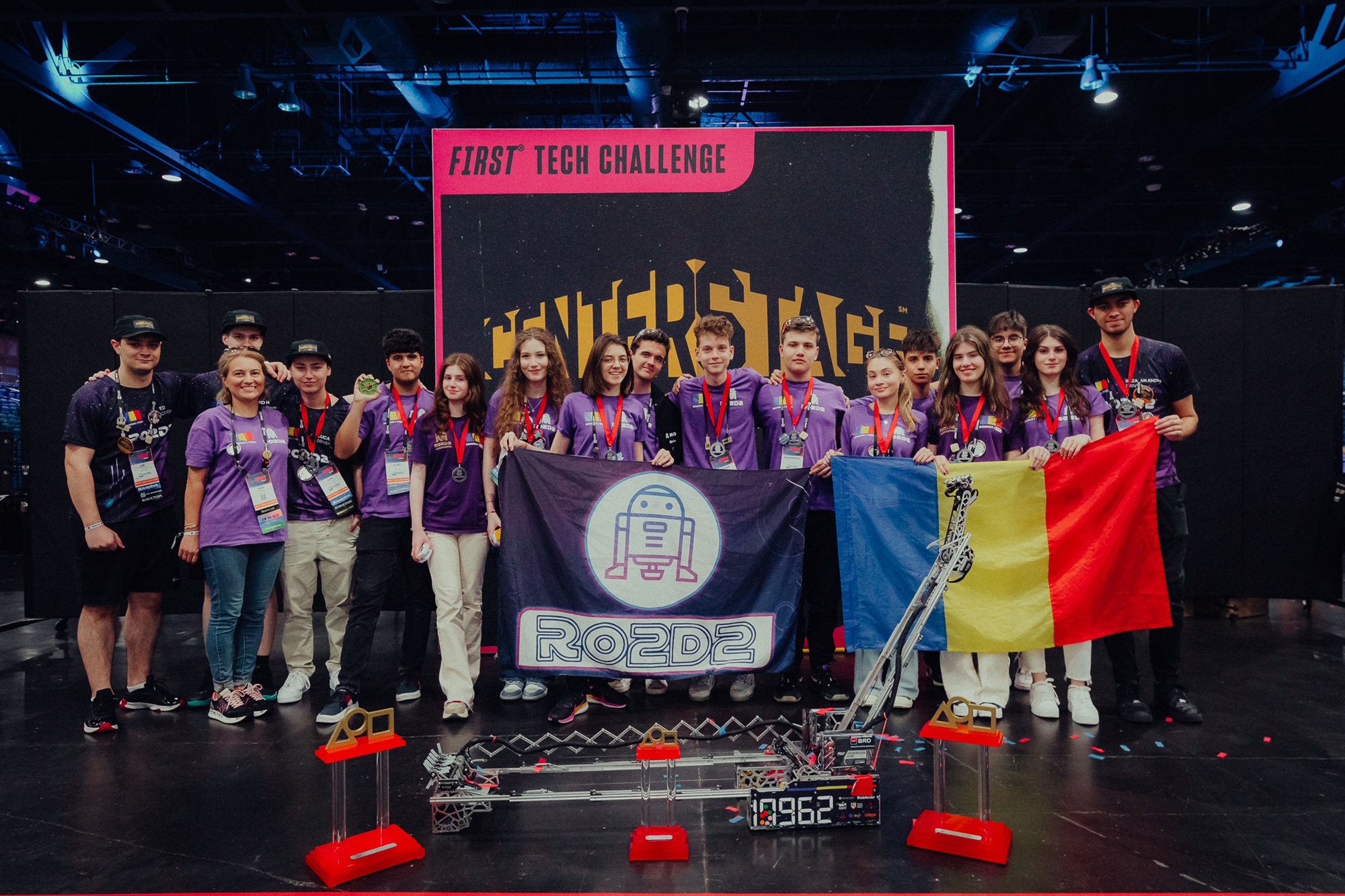 Delegația României la Campionatul Mondial de robotică FIRST Tech Challenge Houston a fost formată din 4 echipe calificate la Campionatul Național BRD FIRST Tech Challenge (echipe din Câmpulung, Focșani, Galați și Ploiești). Pe lângă cele patru echipe, în Houston au mai plecat și cei 4 finaliști ai prestigiosului PREMIU Dean’s List (Daria Ștefania Istrate – Ploiesti, Rareș Tudor Palasan – București, Andra-Gabriela Cîrstoiu – Târgu-Jiu și Eva Pacea – Brăila).