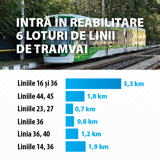 Primăria Municipiului București a atribuit contractele pentru lucrările de reabilitare a 6 loturi de linii de tramvai din cele 11 pentru care a primit oferte, potrivit unui comunicat al instituției.