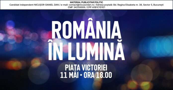 Un eveniment anunțat pe Facebook îi cheamă pe simpatizanții lui Nicușor Dan la o manifestație, duminică, la ora 18:00, în Piața Victoriei. Ca organizator al manifestației „România în lumină” apare Nicușor Dan, care îi cheamă pe cei care cred în „România onestă, dreaptă și europeană”.