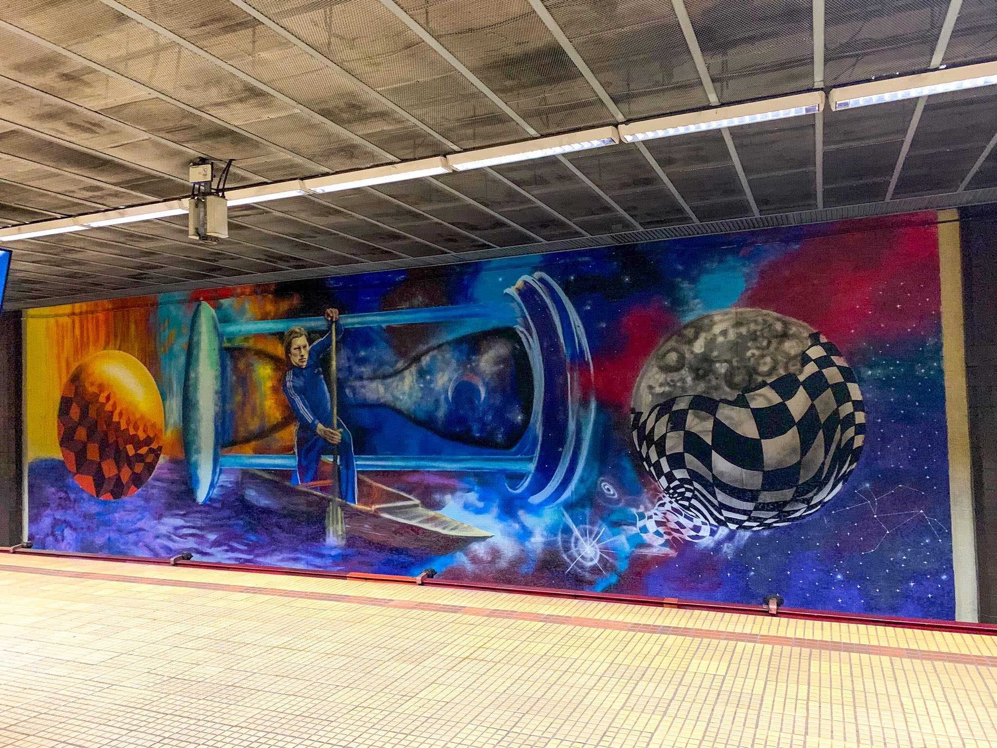 Ieri, pe unul din pereții stației de metrou Ștefan cel Mare, a fost finalizat desenul mural realizat de talentatul artist Obie Platon, potrivit unui anunț pe pagina de Facebook.