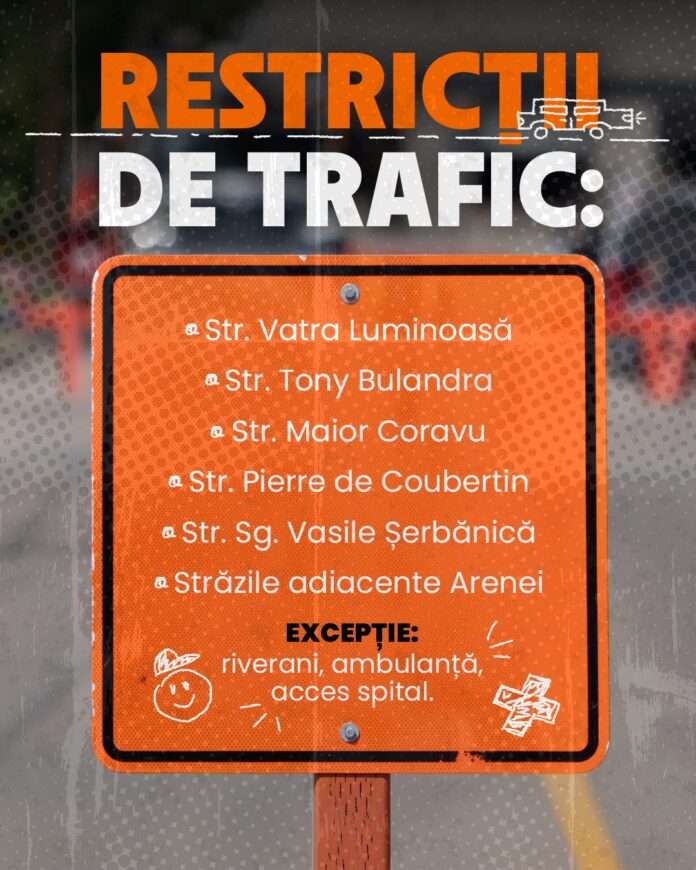 Brigada Rutieră București îi anunță pe șoferi că, începând cu noaptea de 03/04 iulie 2025, ora 00:00, până la încheierea evenimentului, se va interzice oprirea/staționarea mașinilor în intrările de la rond Maior Coravu, Bulevardul Pierre de Coubertin, Bulevardul Basarabia (zona Socului).
