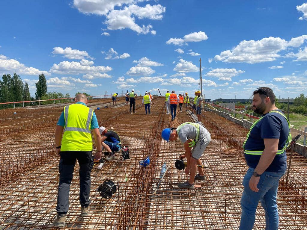 - Se lucrează la armarea plăcii de suprabetonare aferentă rampei de urcare/coborâre spre și dinspre București.