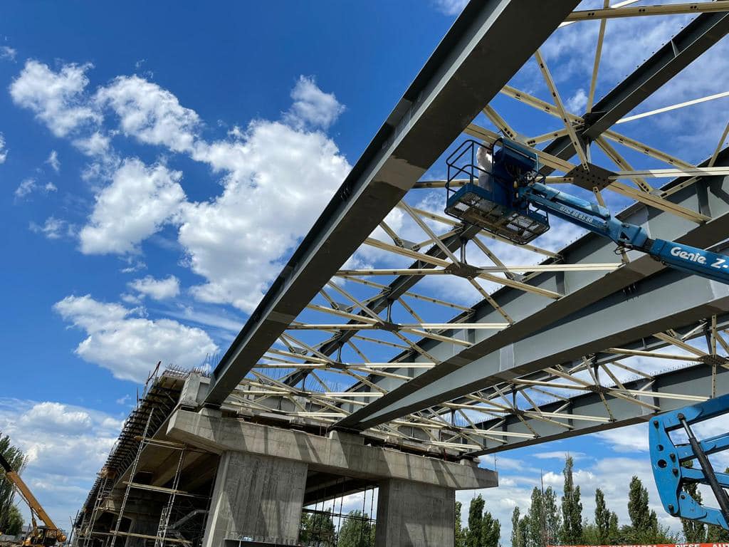 - Au fost finalizate sudurile la tablierul metalic al inelului central și al rampelor, care permit realizarea suprastructurii peste acesta.
