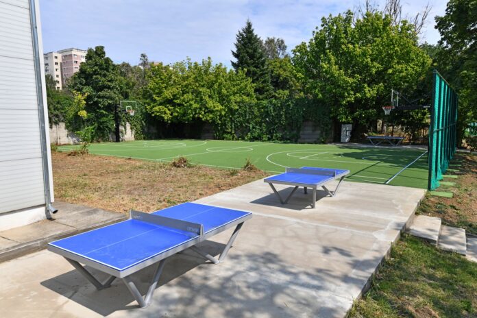Este vorba despre un teren de fotbal, unul de baschet și unul de volei. Tot aici s-au montat și mese pentru tenis de masă.