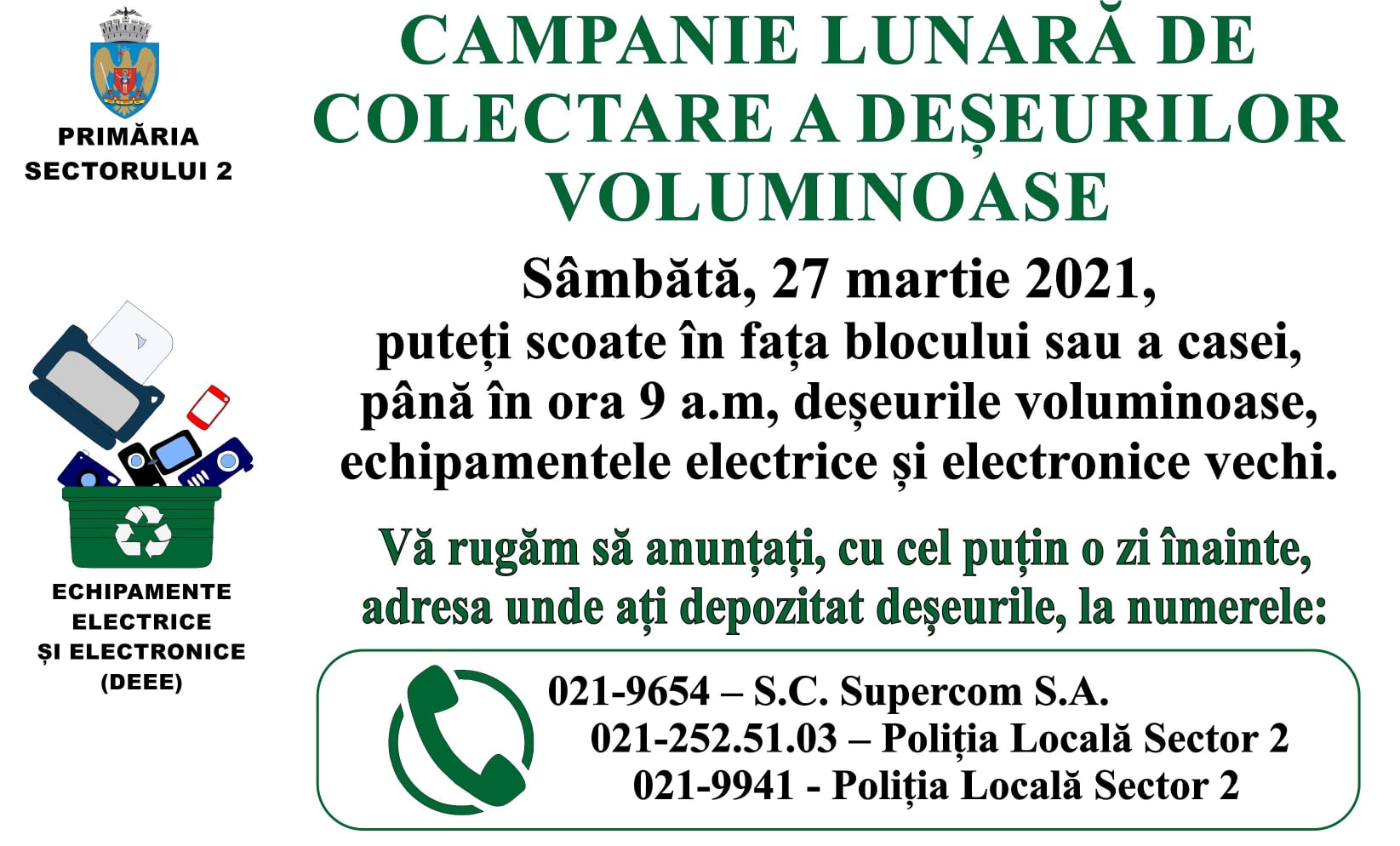 Sâmbătă are loc o nouă campania de colectare a deșeurilor voluminoase și a echipamentelor electrice și electronice vechi din Sectorul 2.