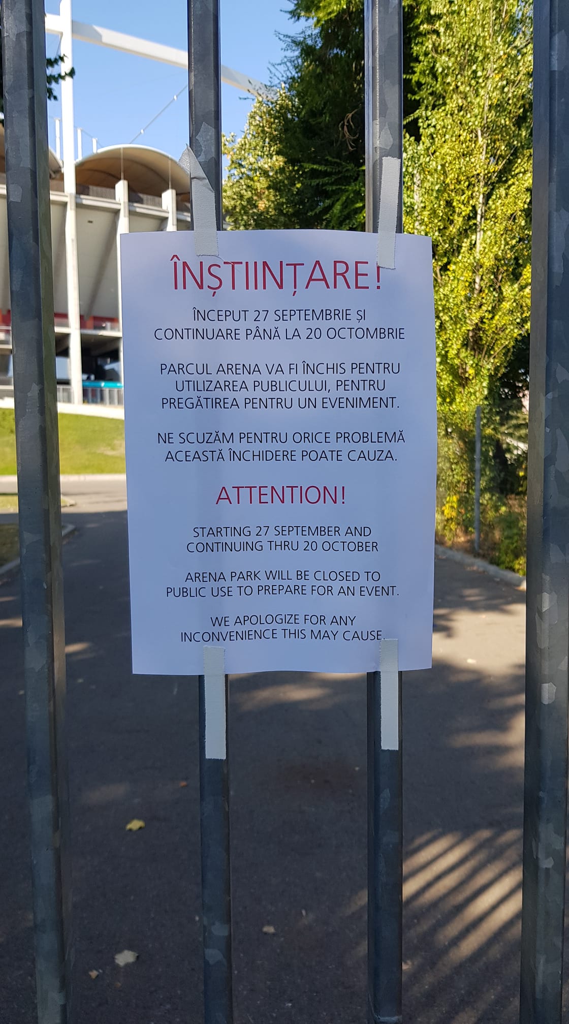 Parcul din jurul Arenei Naționale se închide pentru public, din 27 septembrie