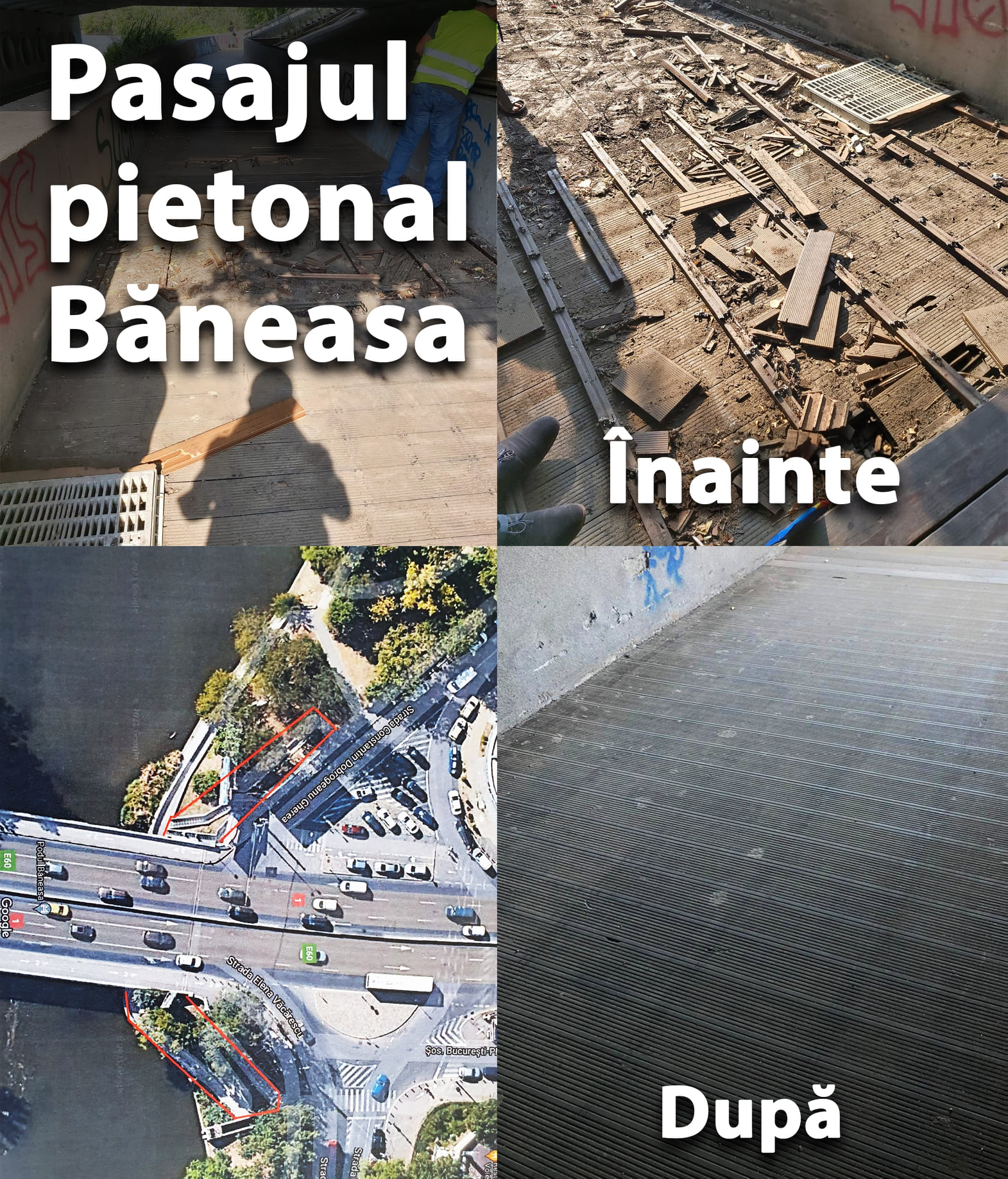 Pasajul pietonal Băneasa a fost refăcut, podelele rupte au fost înlocuite, iar zona a fost ecologizată, anunță primarul Sectorului 1, Clotilde Armand, într-o postare pe Facebook.