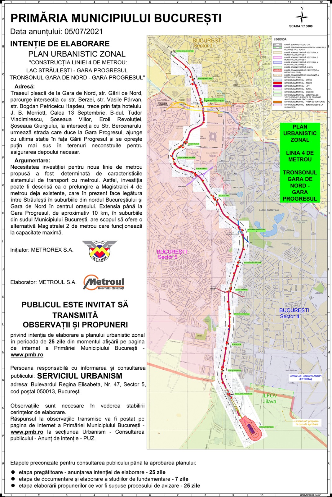 Primarul Sectorului 5, Cristian Popescu Piedone demarează, în premieră, împreună cu Primăria Generală a Municipiului București și METROREX S.A., procedura de consultare publică a Planului Urbanistic Zonal – Magistrala 4 – Tronsonul Gara de Nord – Gara Progresul, anunță Primăria Sectorului 5 prin intermediul unui comunicat de presă.