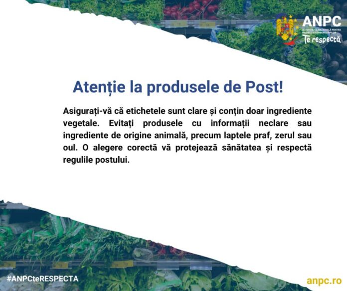 Acesta le recomandă consumatorilor să fie atenţi la denumirile înşelătoare deoarece unele produse etichetate de post pot conţine ingrediente de origine animală şi să citească lista ingredientelor pentru evitarea surprizelor.