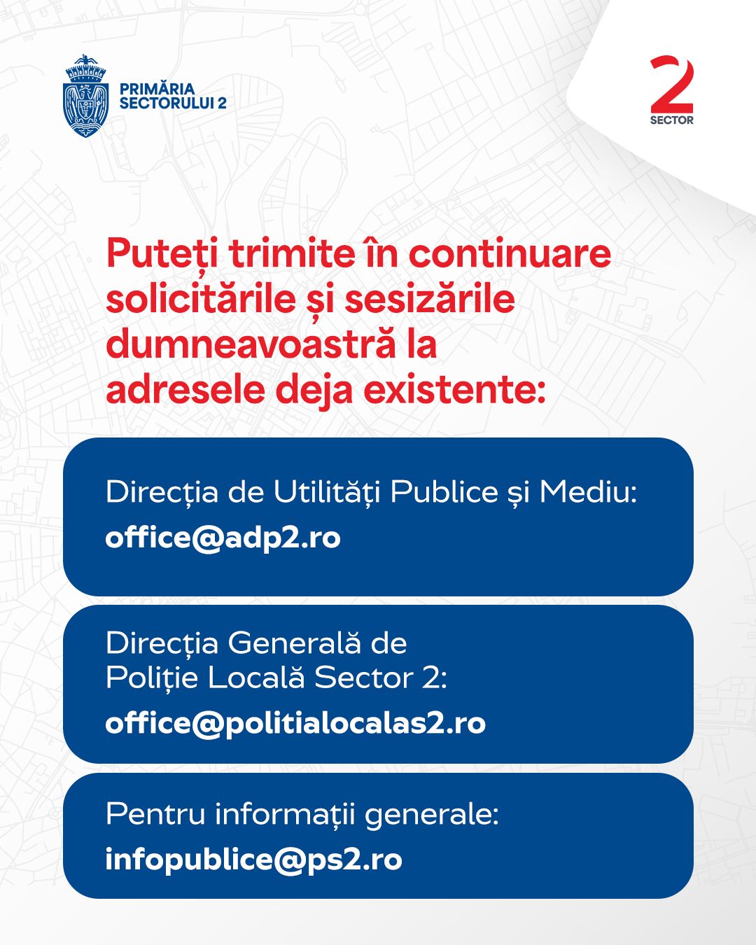 Pentru alte solicitări, cetățenii pot contacta în continuare direcțiile specializate prin email: