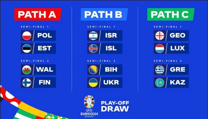 Meciurile din play-off-ul pentru EURO 2024 se vor disputa în luna martie. Pe 21 martie vor avea loc partidele din semifinale, iar învingătoarele se vor întâlni cinci zile mai târziu pentru a afla și ultimele trei echipe calificate la Campionatul European din Germania (14 iunie – 14 iulie).