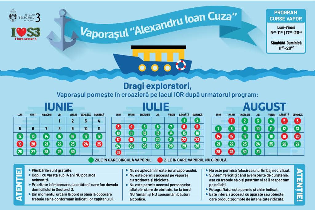 Începând din 12 iunie, vizitatorii parcului „Alexandru Ioan Cuza” se pot plimba din nou cu vaporașul, anunță Primăria Sectorului 3.